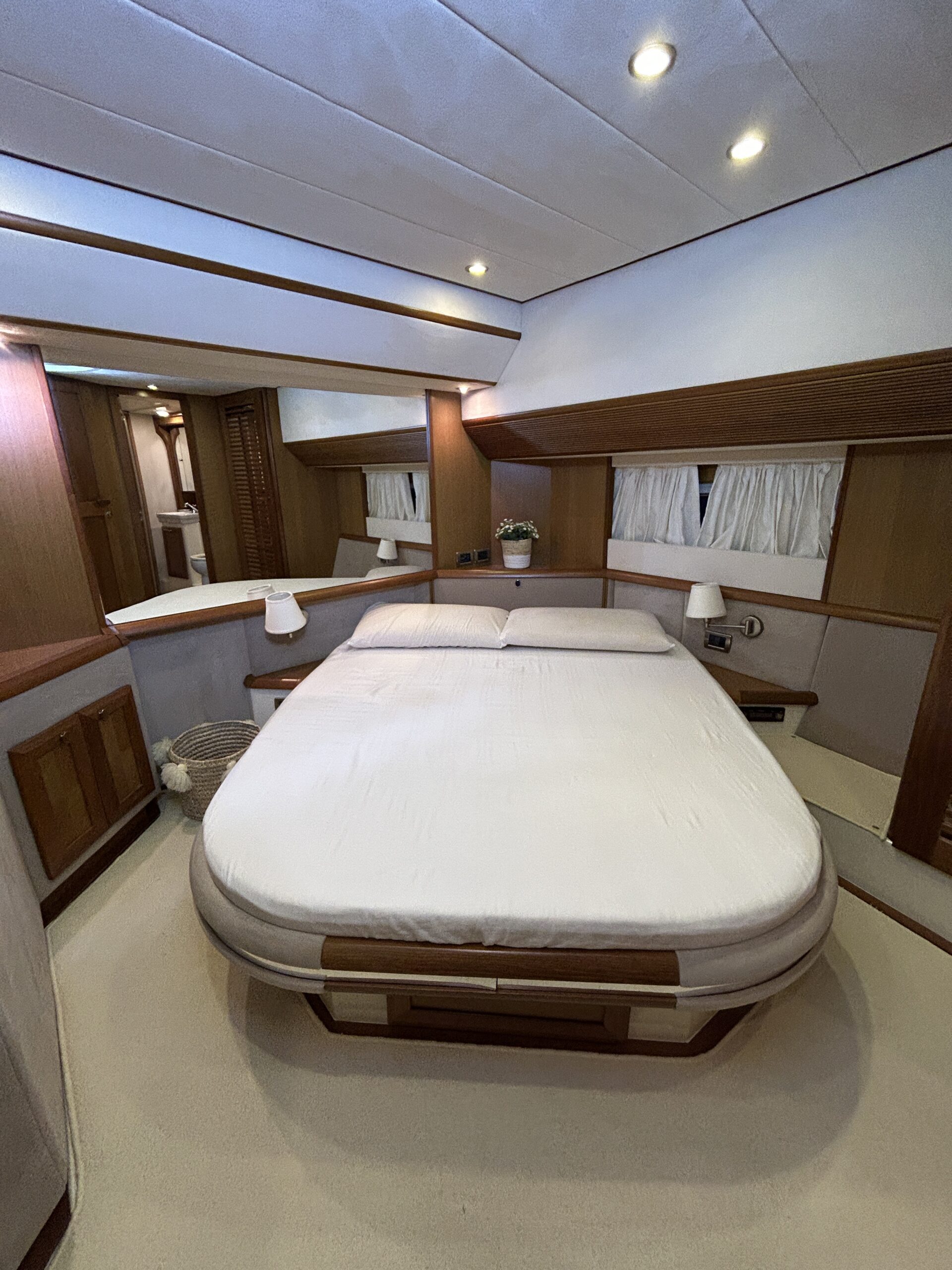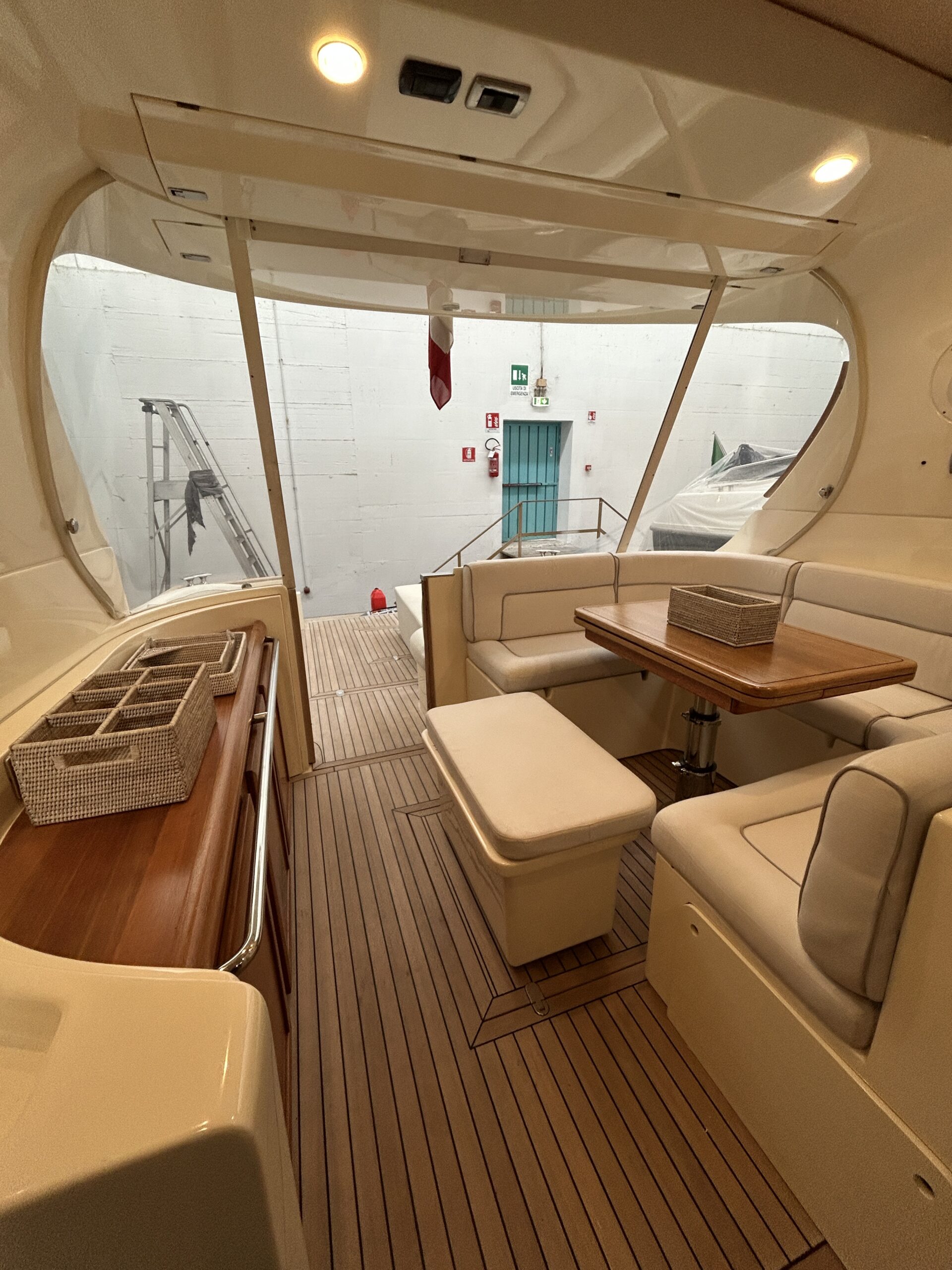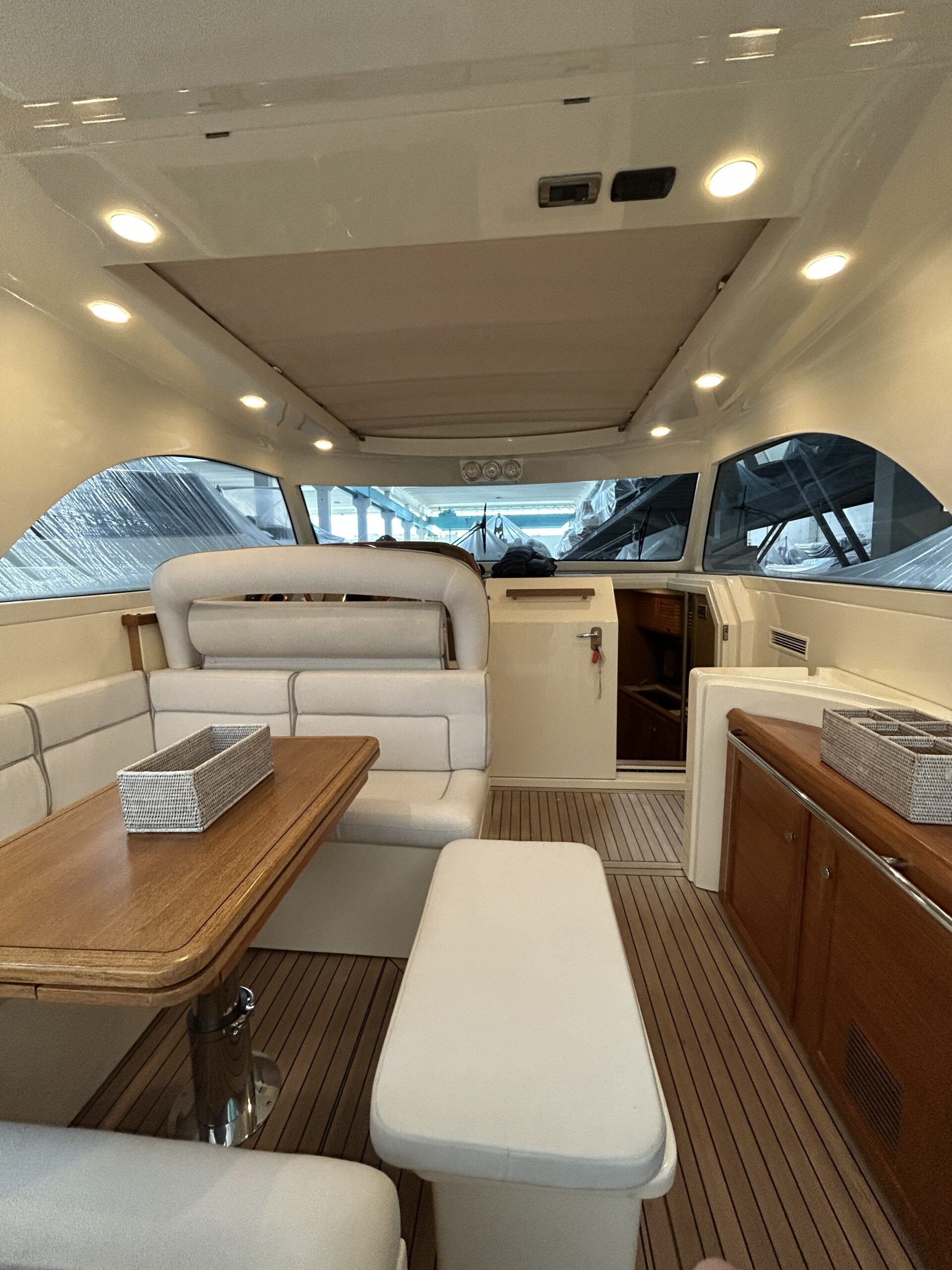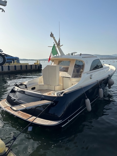 • Accessori extra Ancora di rispetto, spiaggetta abbattibile, chiusura dinette elettrica, a/C pozzetto, rivestimento di spugna per cuscineria esterna, sup, seadoo Interventi eseguiti nel 2025 sostituzione manette nuove ZF, nuovo GPS Raymarine Axiom plus 12 rv, revisione impianto fisso anticendio, sostituzione pompa acque nere, nuove batterie motori e servizi Interventi eseguiti 2024 riverniciatura poppa, portellone poppa e parte delle murate, sostituzione cestelli filtri acqua mare motori, revisione elica di prua e cambio piede, lucidatura completa dell'imbarcazione