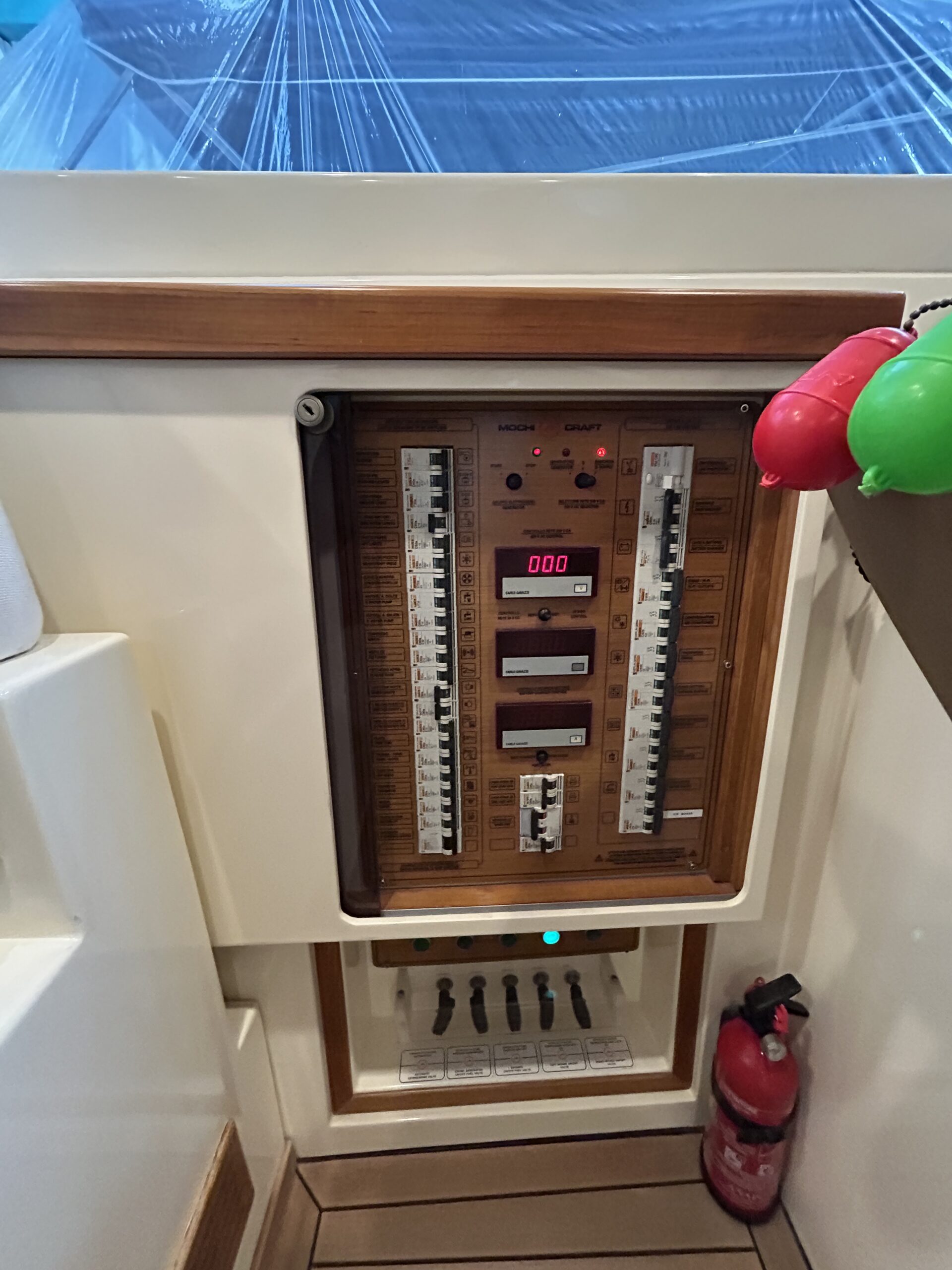• Acqua Calda, Aria condizionata, Boiler, Clima reversibile, Dissalatore, Impianto acque nere, Indicatore del serbatoio del carburante, Indicatore del Serbatoio dellAcqua, Indicatore della pressione dellolio nel motore, Indicatore della temperatura del motore, Pavimento interno in legno, Prese interne 12v, Prese interne 220v, Serbatoio Acque Nere, Sistema Idrico, Voltmetro, WC marino elettrico