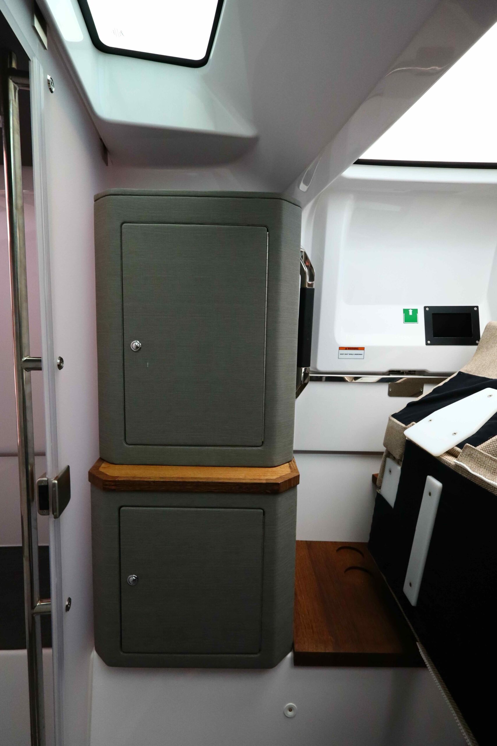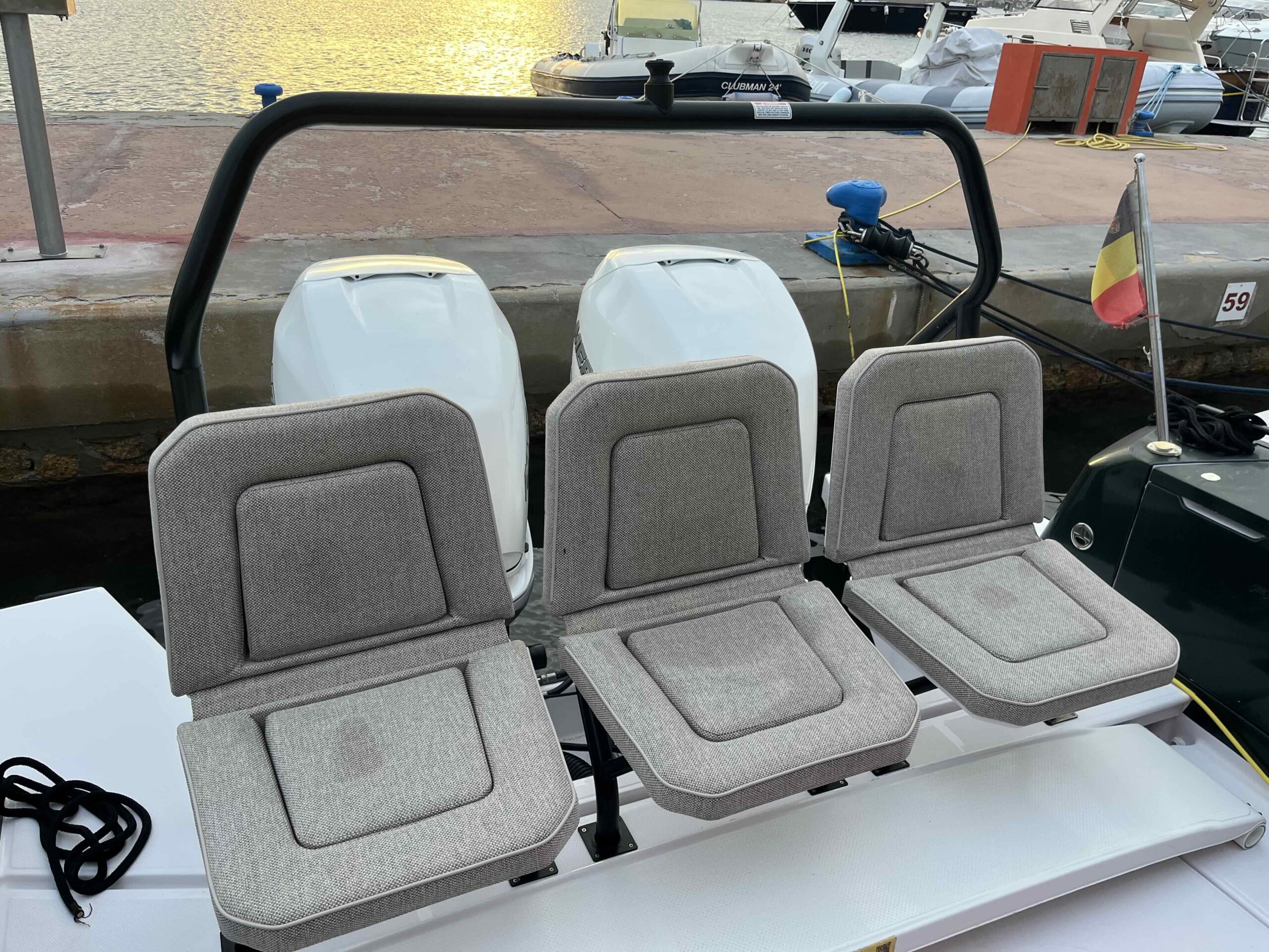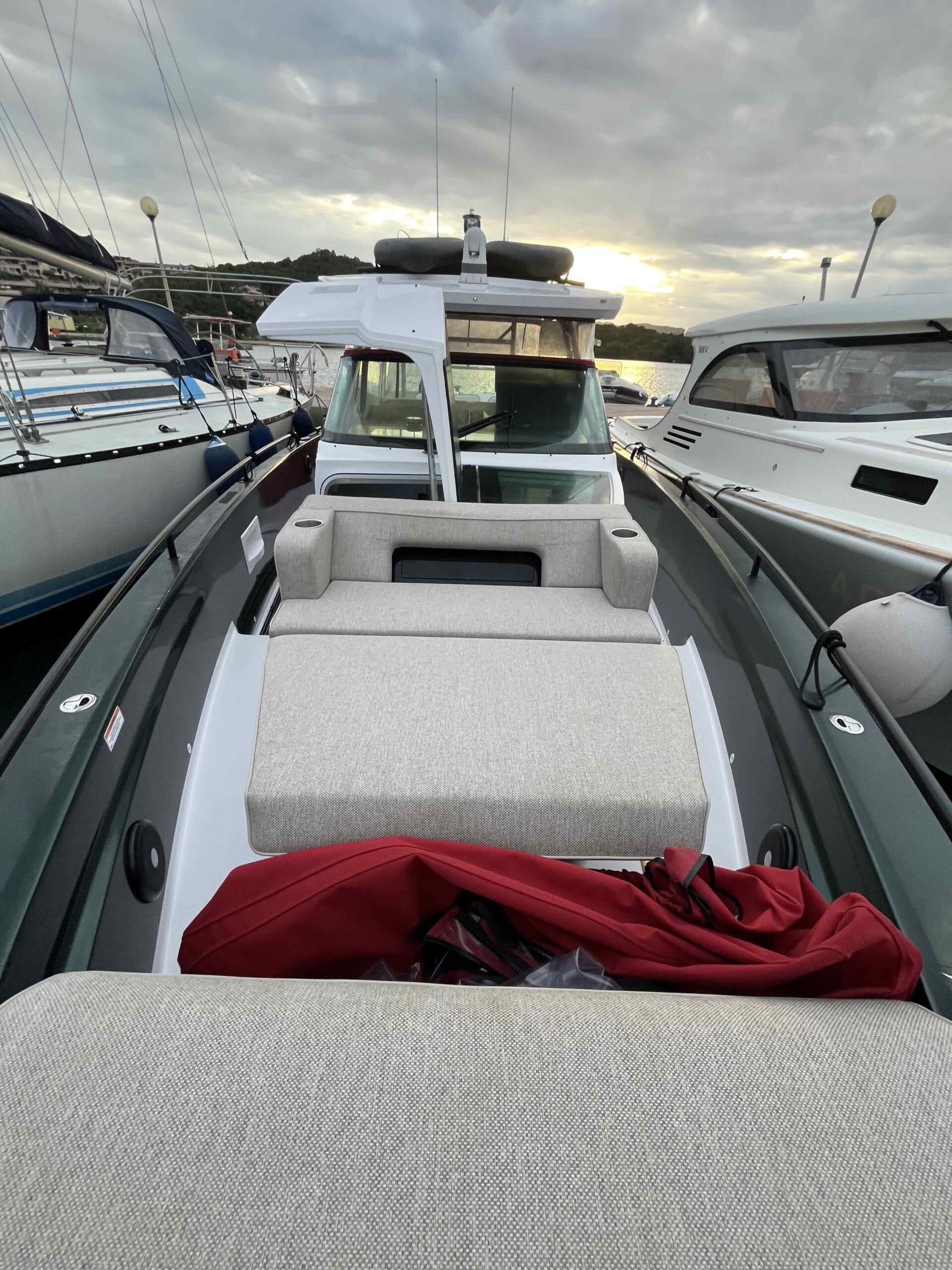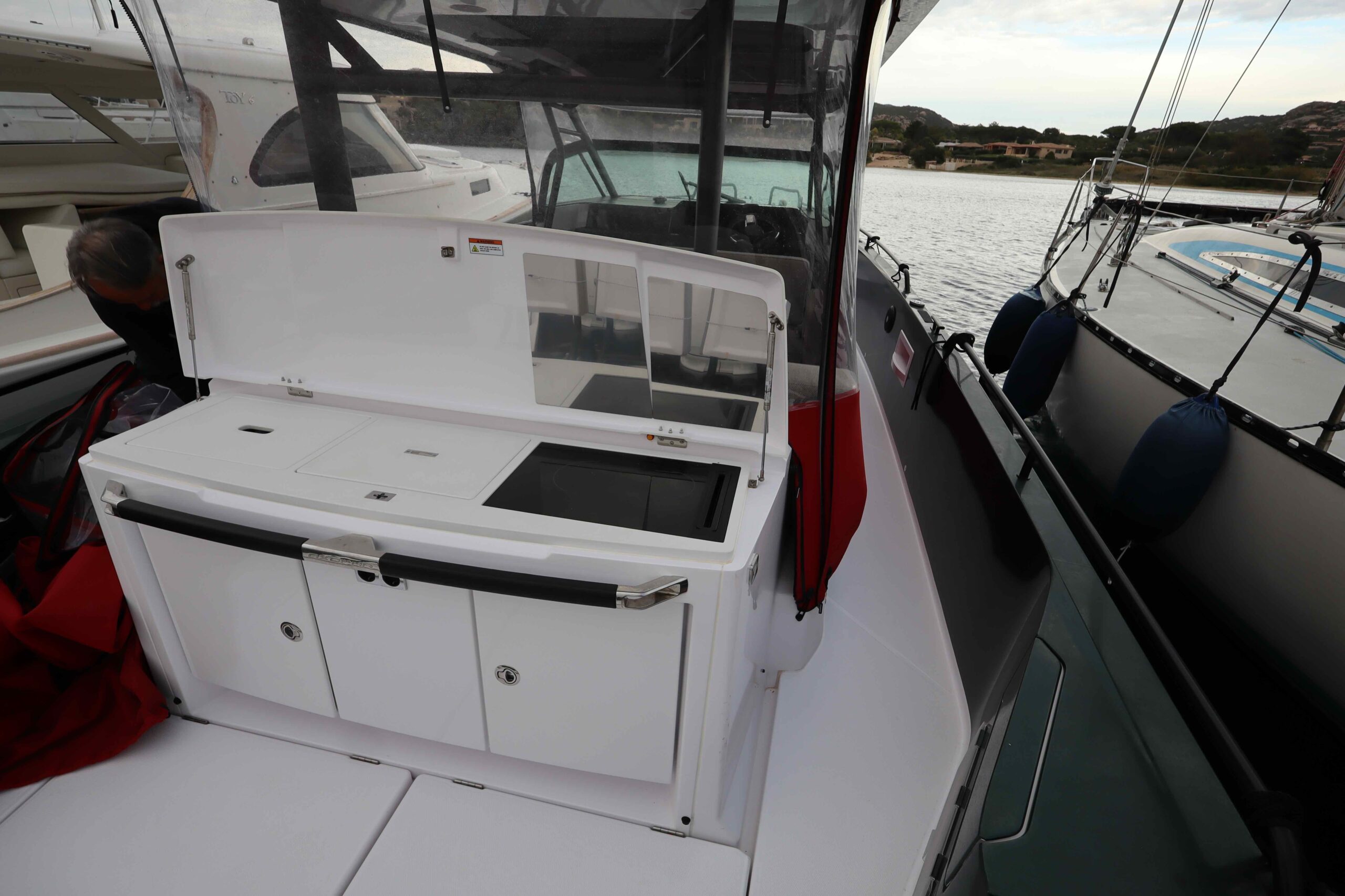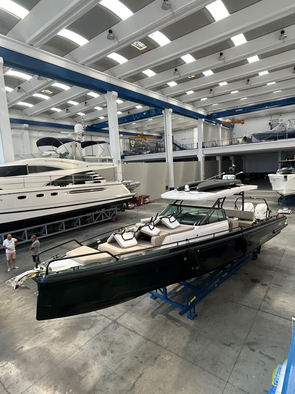 Allestimento tecnico e di coperta Allarme motore, Ancora, Batterie, Caricabatterie, Cavo corrente di banchina, Colorazione speciale (wrapping verde), Doccia esterna (caldo/freddo), Elica di prua - bow thruster, Impianto antincendio,Lavandino nel Pozzetto, Luci di cortesia, Luci subacquee (dual color), Monitor batteria, Pompa di sentina automatica, Presa 220V banchina, Salpa Ancore Elettrico, Scaletta da bagno, Tromba.