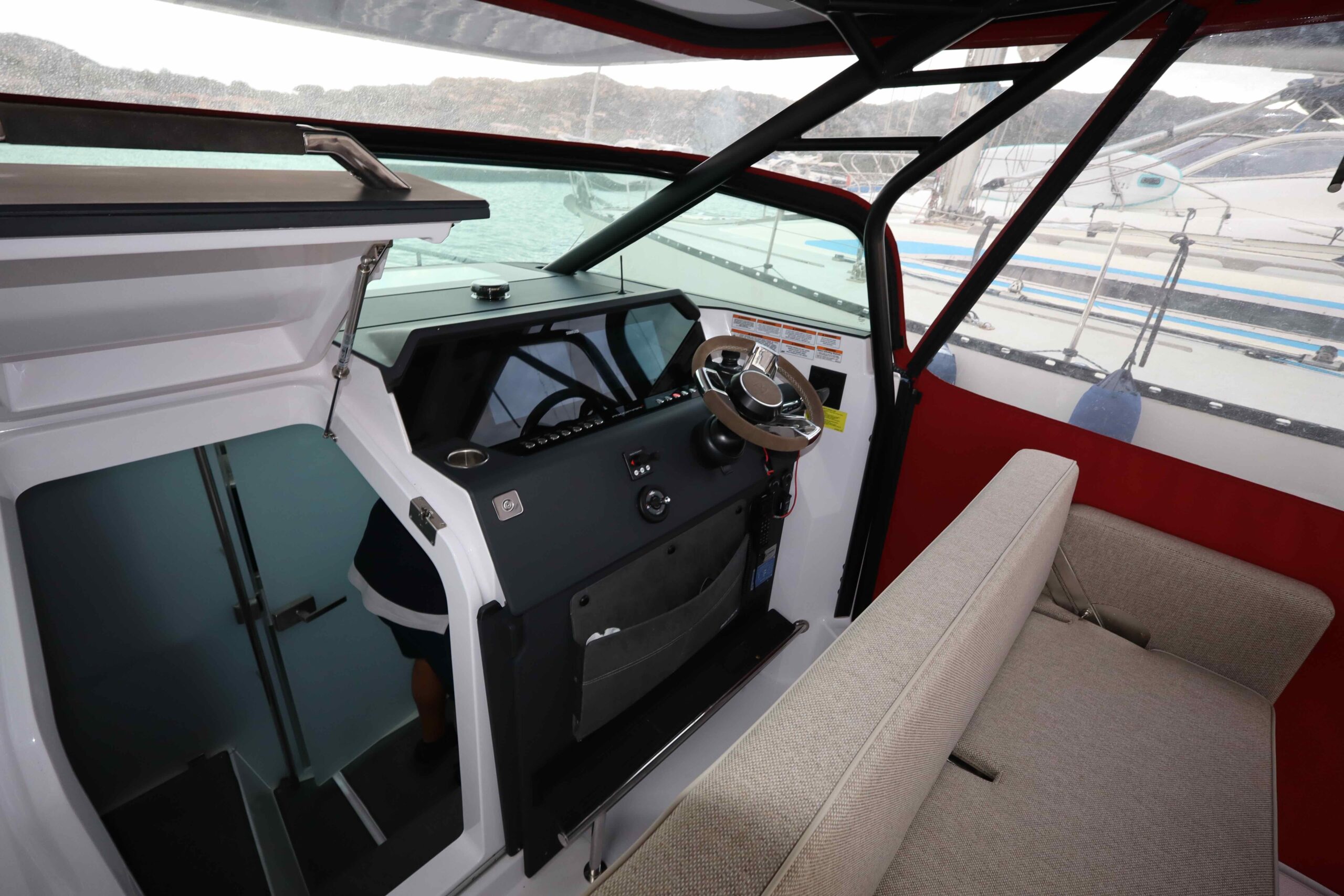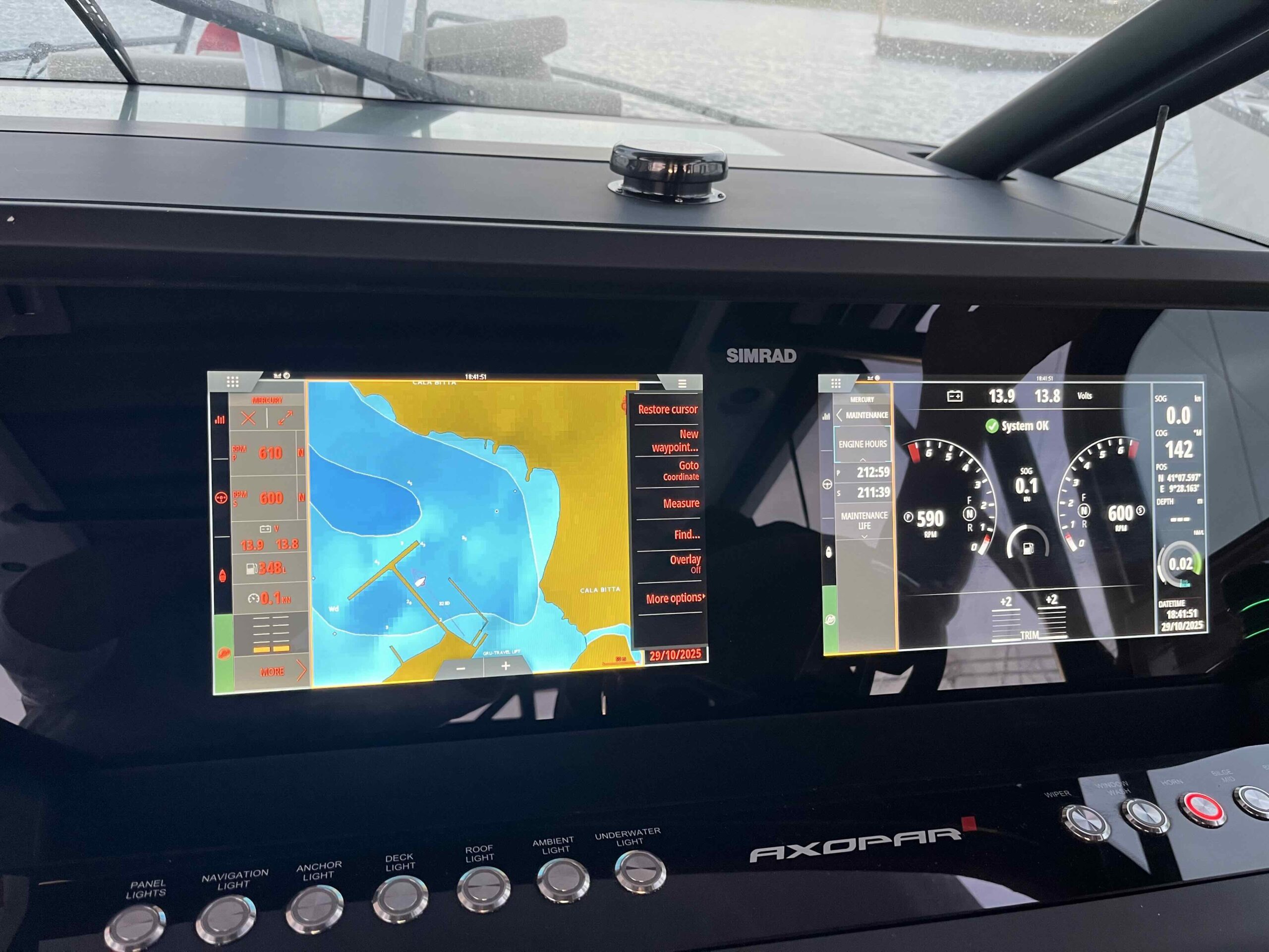 Strumentazione elettronica di navigazione 2 Display (12"), GPS, Luci di navigazione, Radar (Simrad Radar Halo20+), Radio VHF (Simrad VHF RS100B), Sedile Copilota